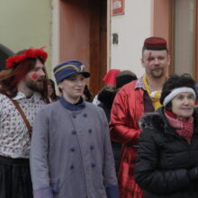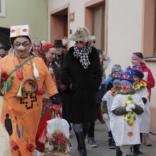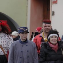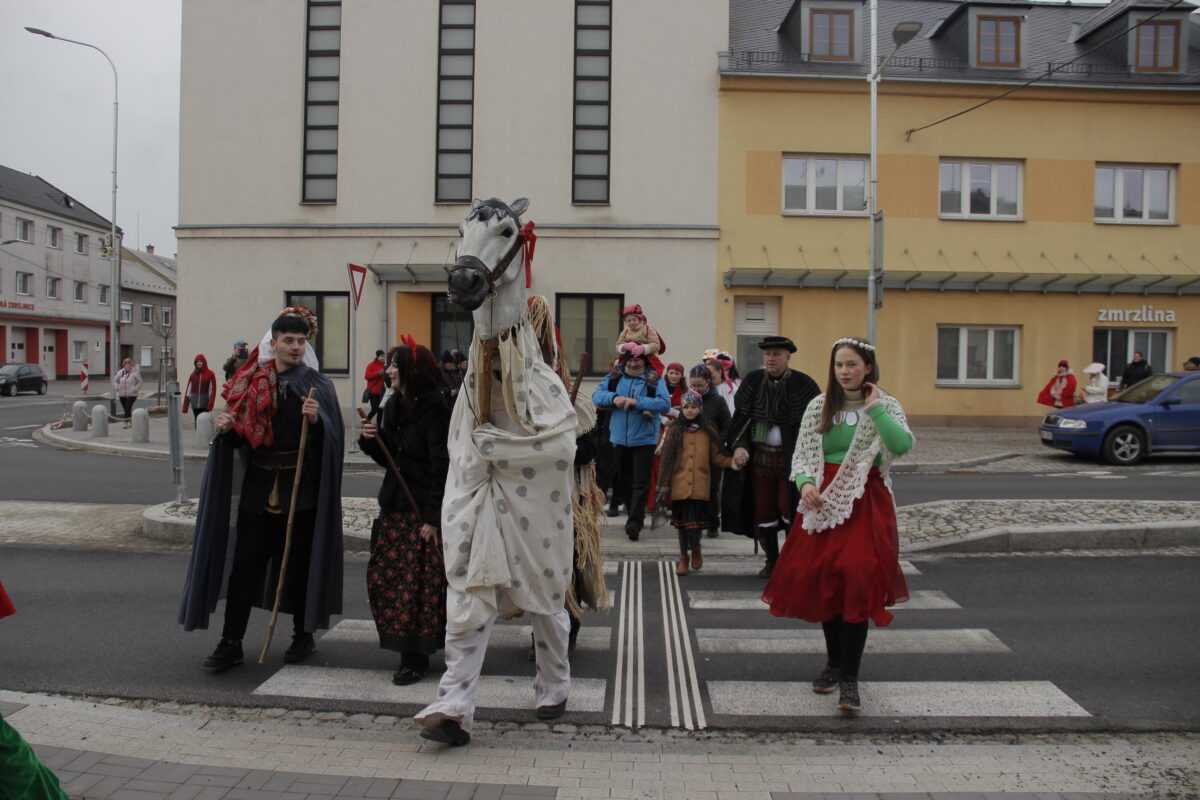 Vrcholem dne je bujarý průvod maškar, který vychází ze Zámeckého náměstí a prochází městem. V průvodu nechybí tradiční postavy jako medvěd (symbol plodnosti), kobyla, kominíci, Žid či smrtka.